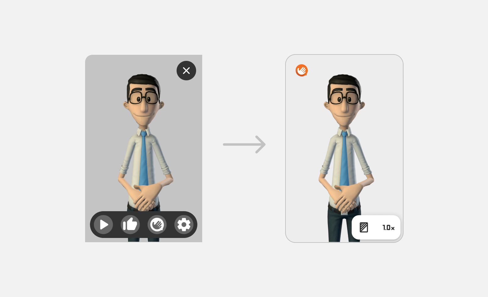 Essa funcionalidade torna o conteúdo do site acessível para pessoas surdas por meio de um avatar que traduz textos clicáveis em língua de sinais.