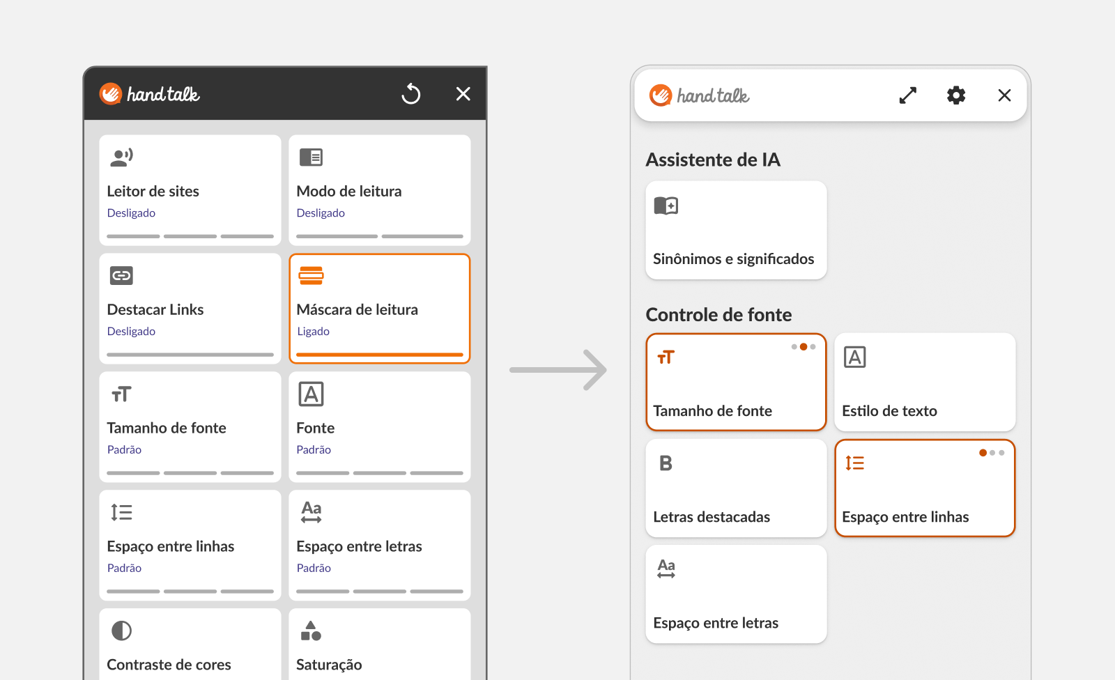 São ferramentas de acessibilidade que os usuários podem utilizar conforme suas necessidades — desde ajustes simples, como tamanho da fonte e espaçamento entre linhas, até recursos mais avançados, como um dicionário de sinônimos e significados alimentado por inteligência artificial.